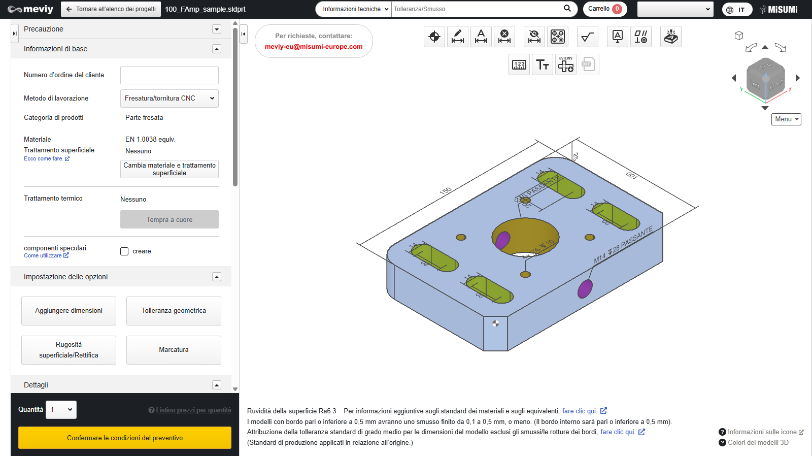 - Il Visualizzatore 3D consente di manipolare i modelli dai dati 3D caricati su meviy in modo simile al software CAD.