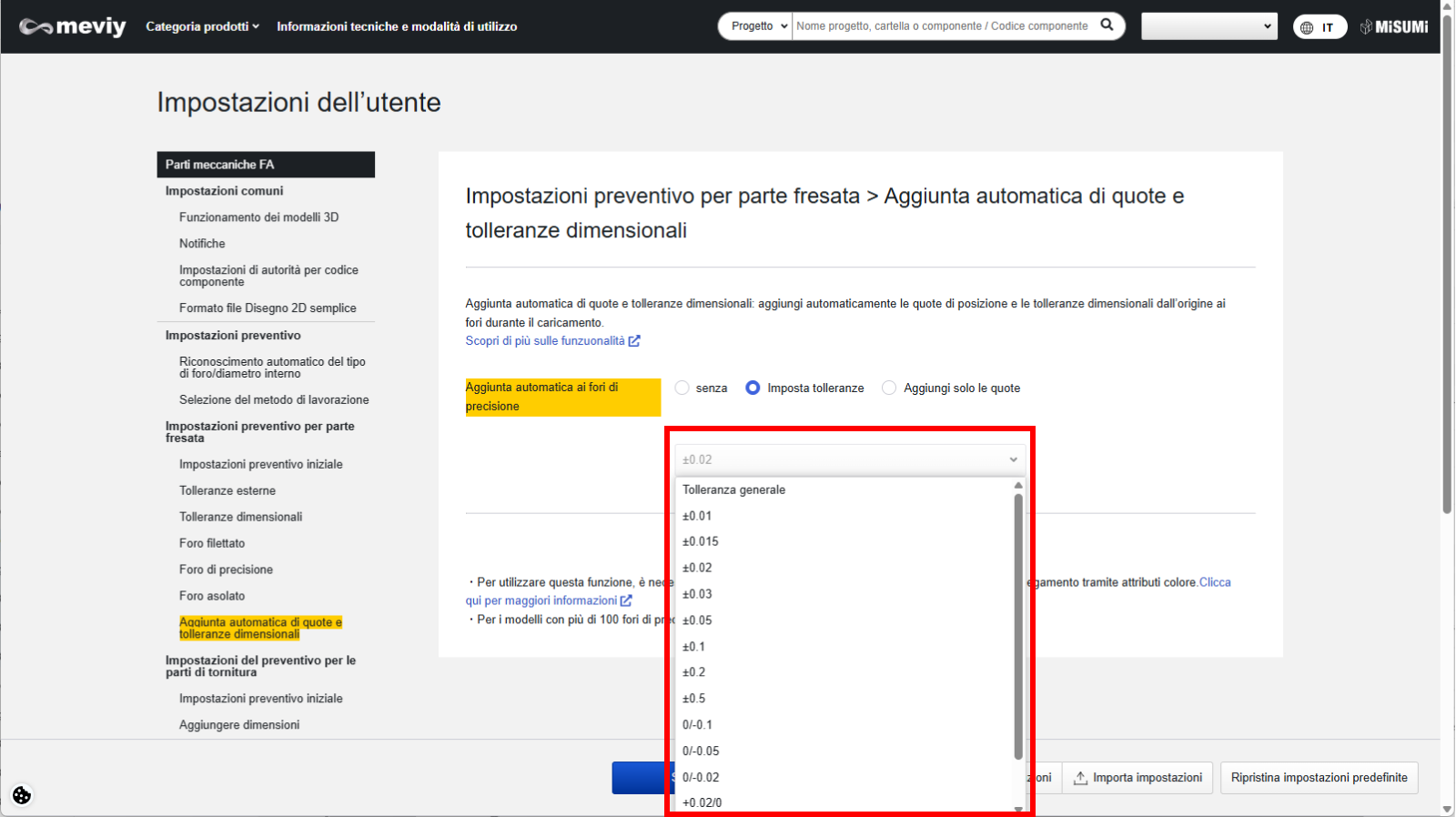 - [Fresatura CNC] Impostazioni preventivo