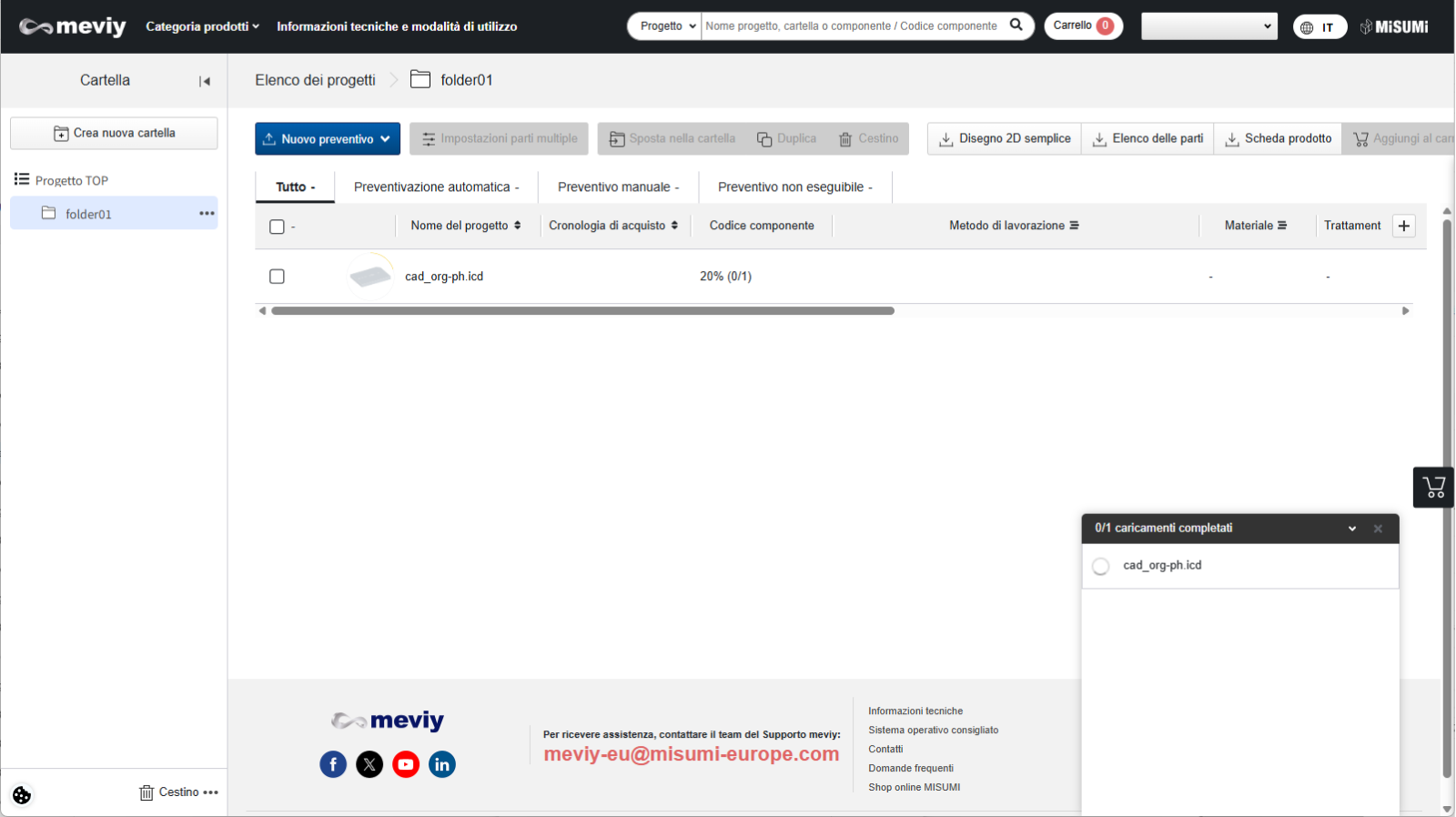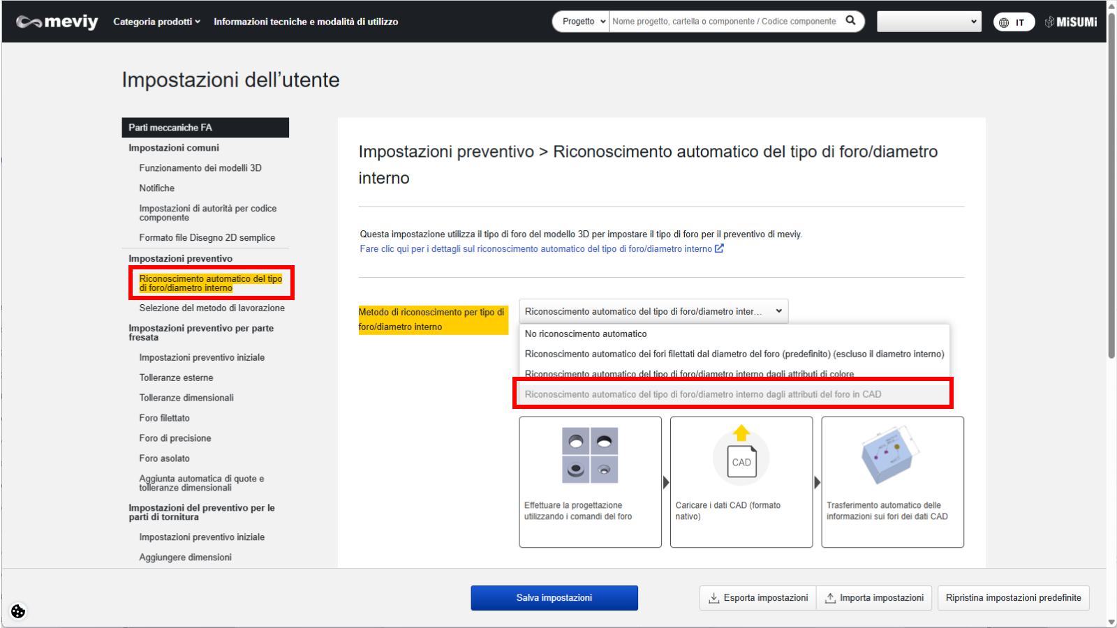 Dopo aver registrato le impostazioni utente, caricare il modello su meviy.
