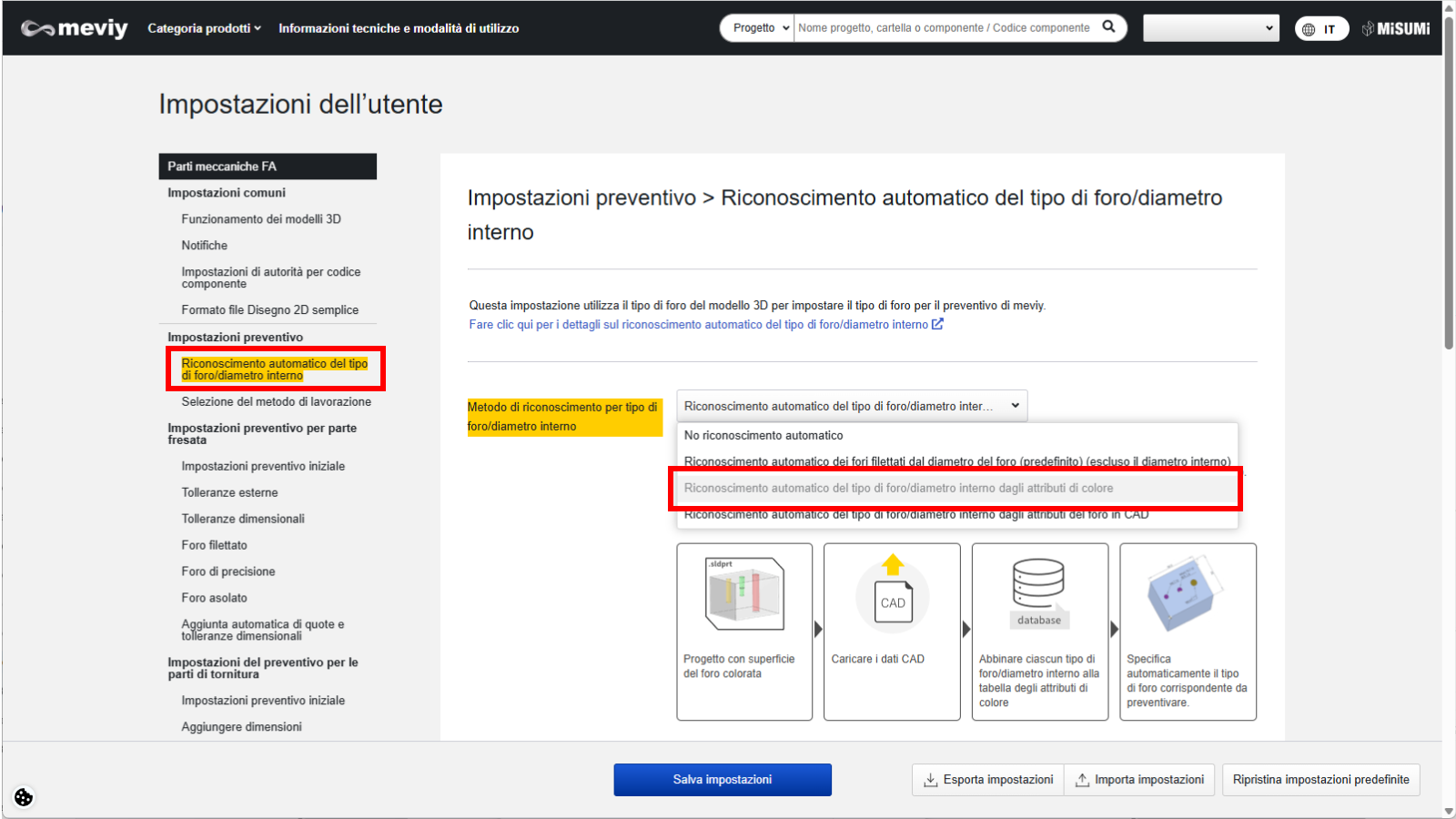 *Si prega di caricare un modello che utilizzi attributi colore o attributi foro nel CAD.