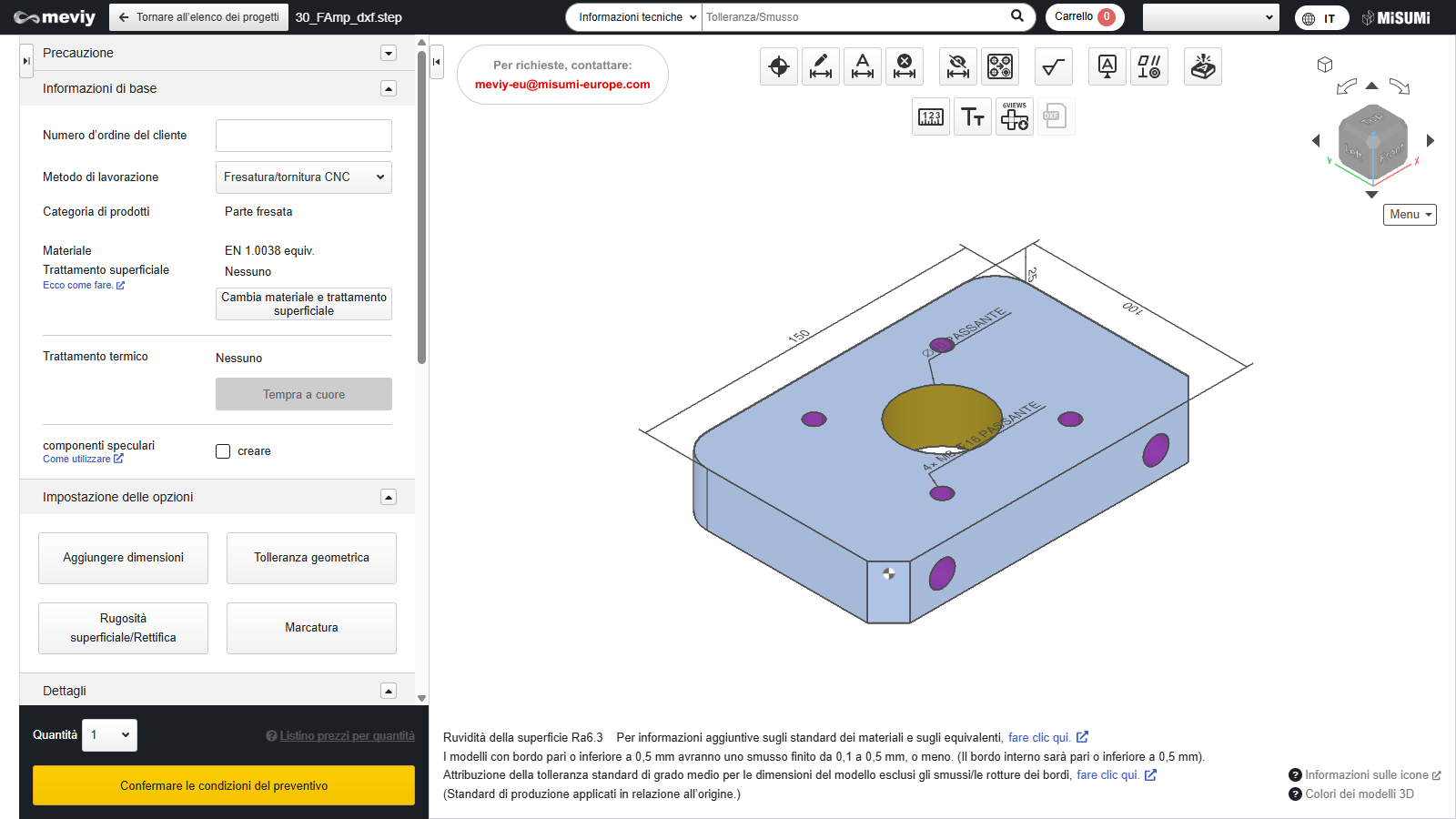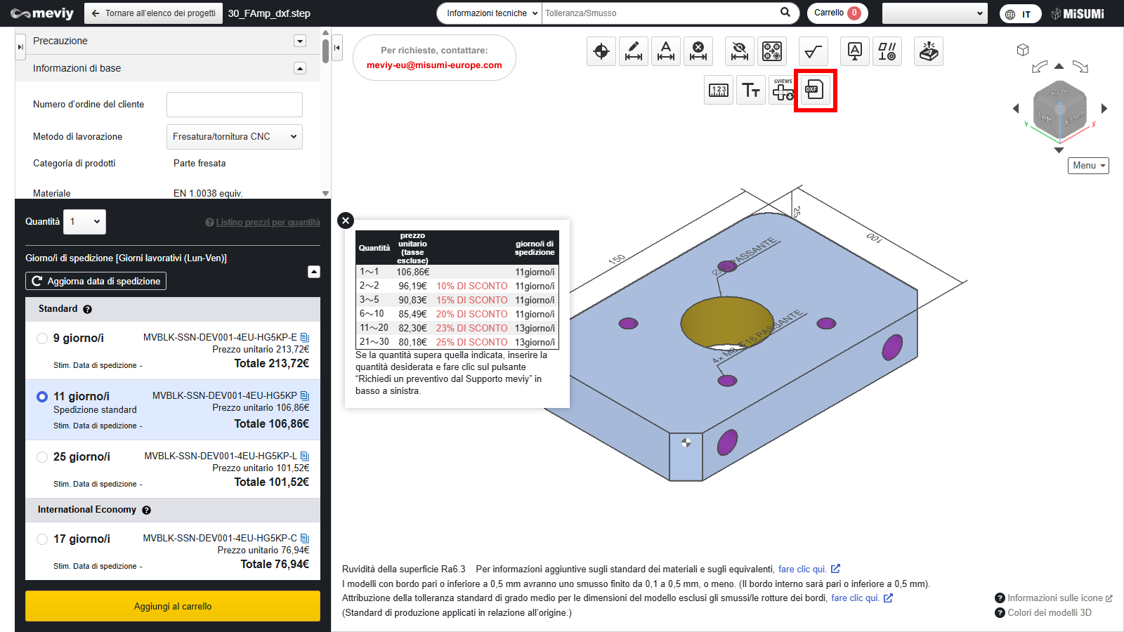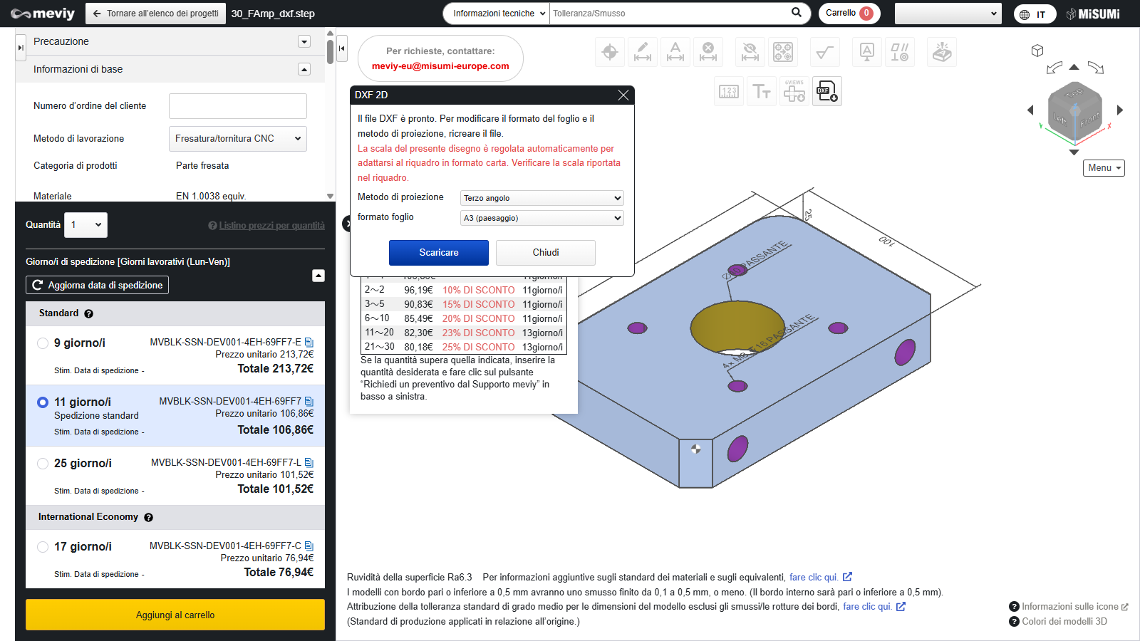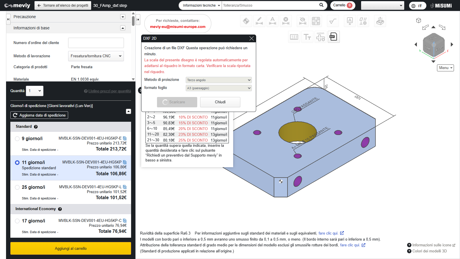 • Per scaricare il file “2D DXF”, devi finalizzare le condizioni del preventivo e definire il numero di parte.