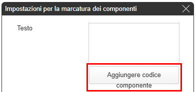 Fare clic sul pulsante “Aggiungi codice componente” visualizzato nella finestra di dialogo.