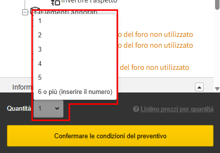 La quantità può essere modificata anche dopo la conferma delle condizioni di preventivo, purché rientri nell’intervallo di preventivo automatico.