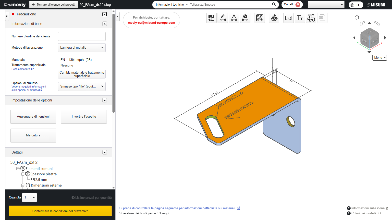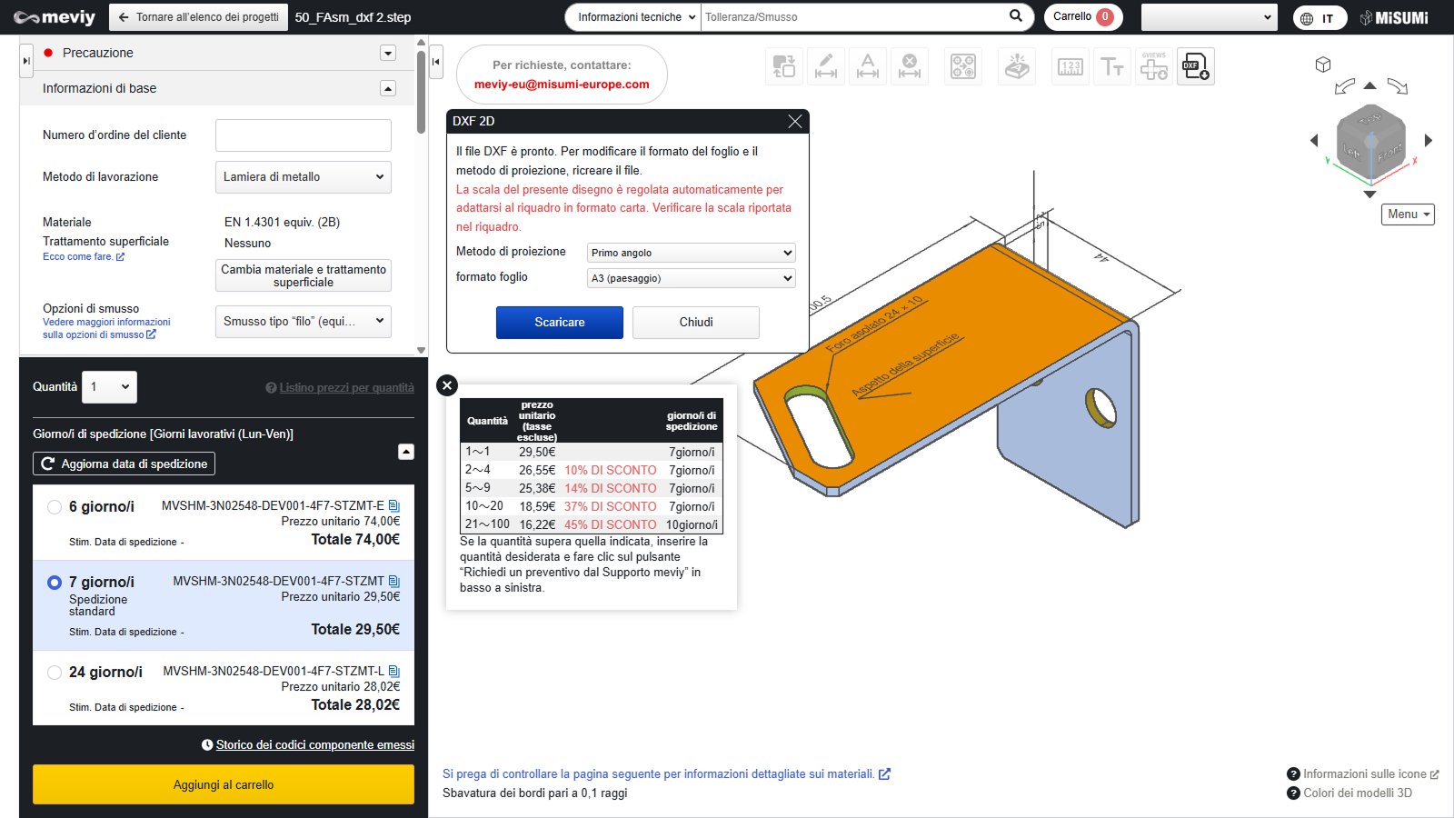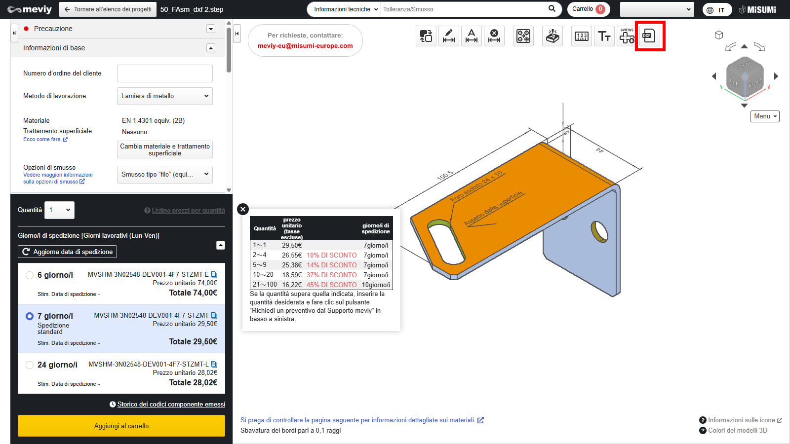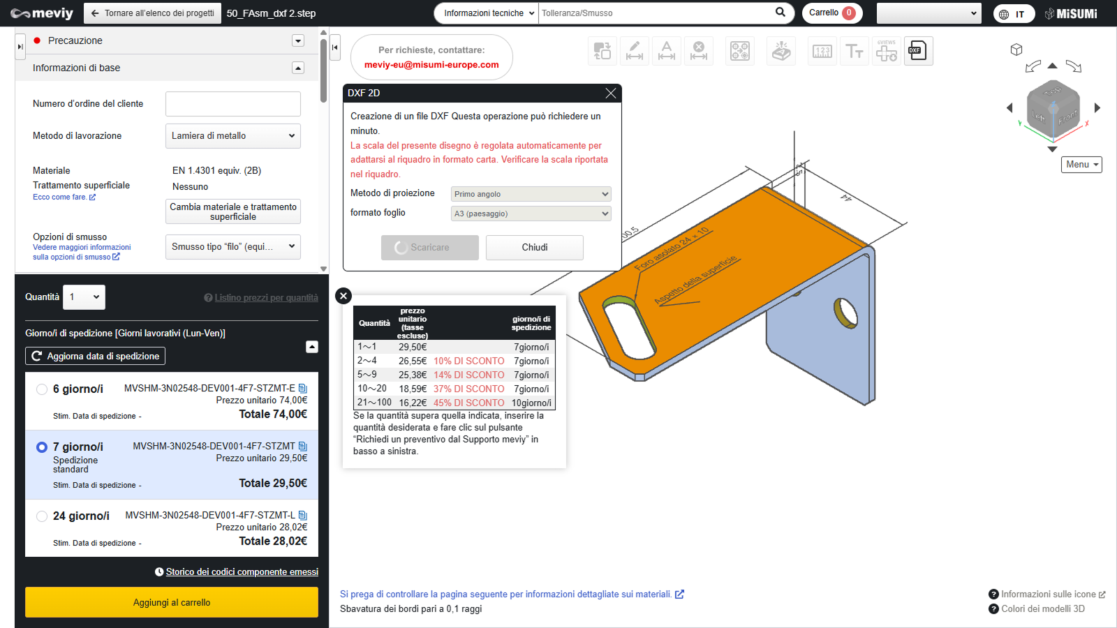• Per scaricare il file “2D DXF”, devi finalizzare le condizioni del preventivo e definire il numero di parte.