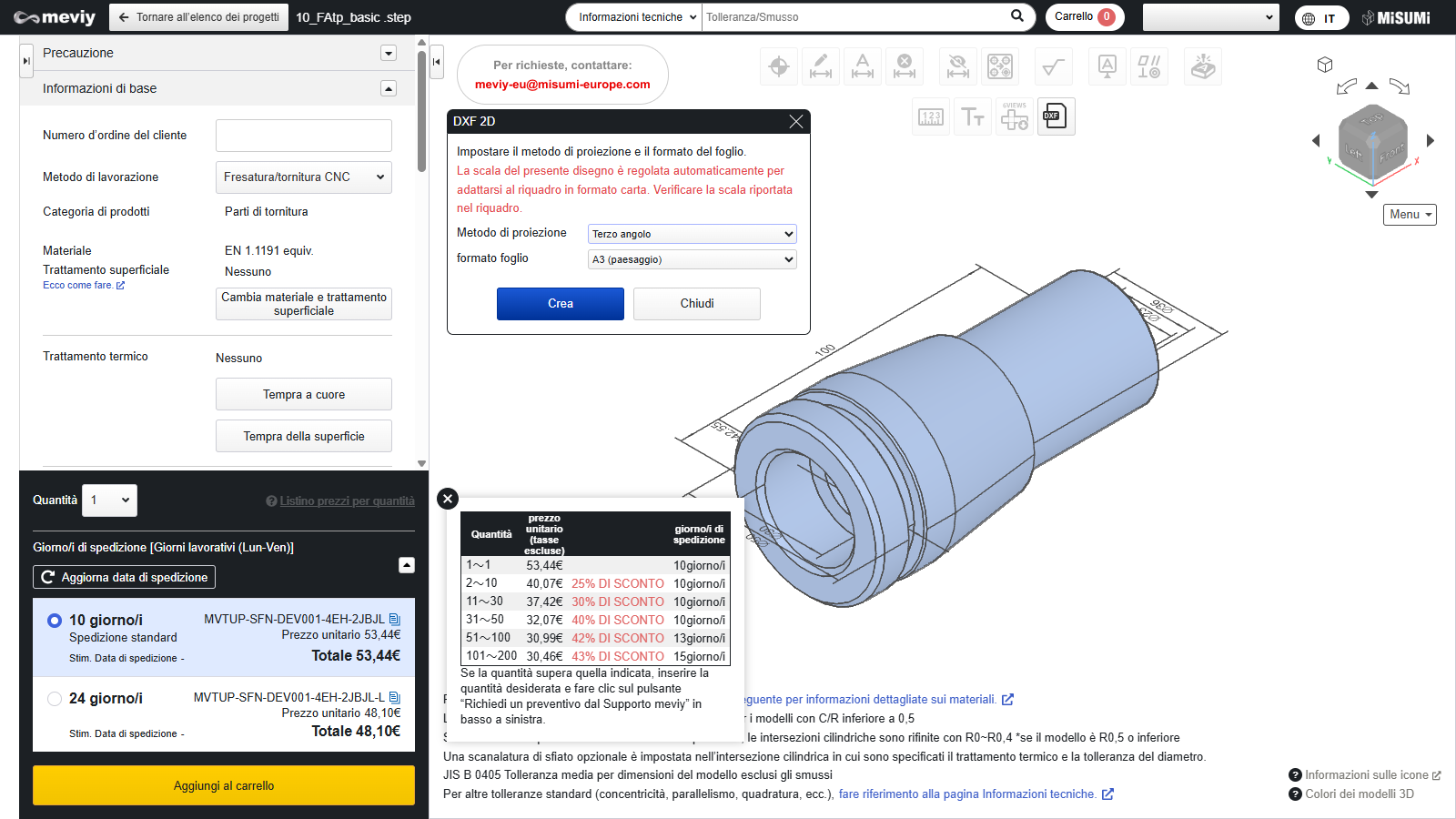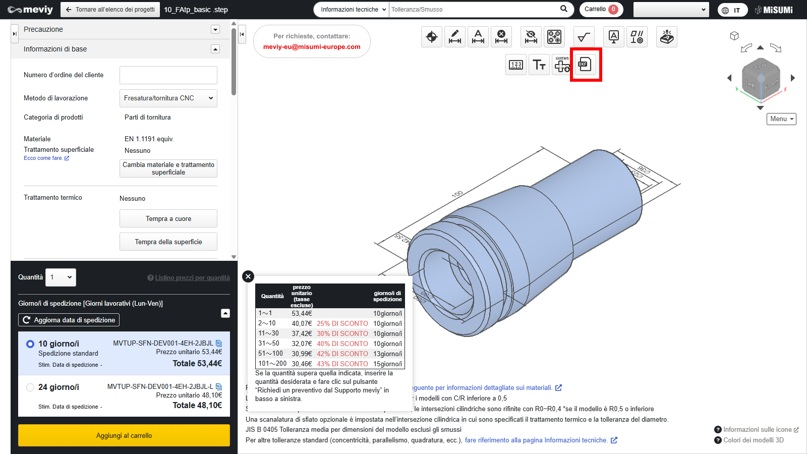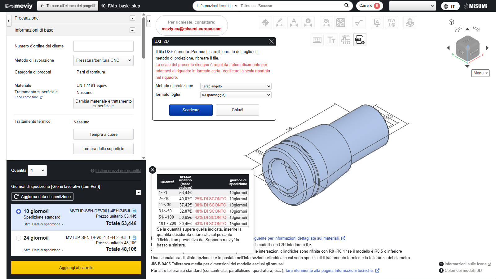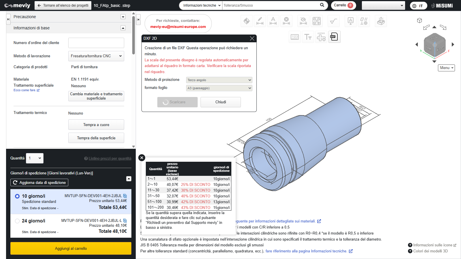 - [Tornitura CNC] Impostazioni preventivo