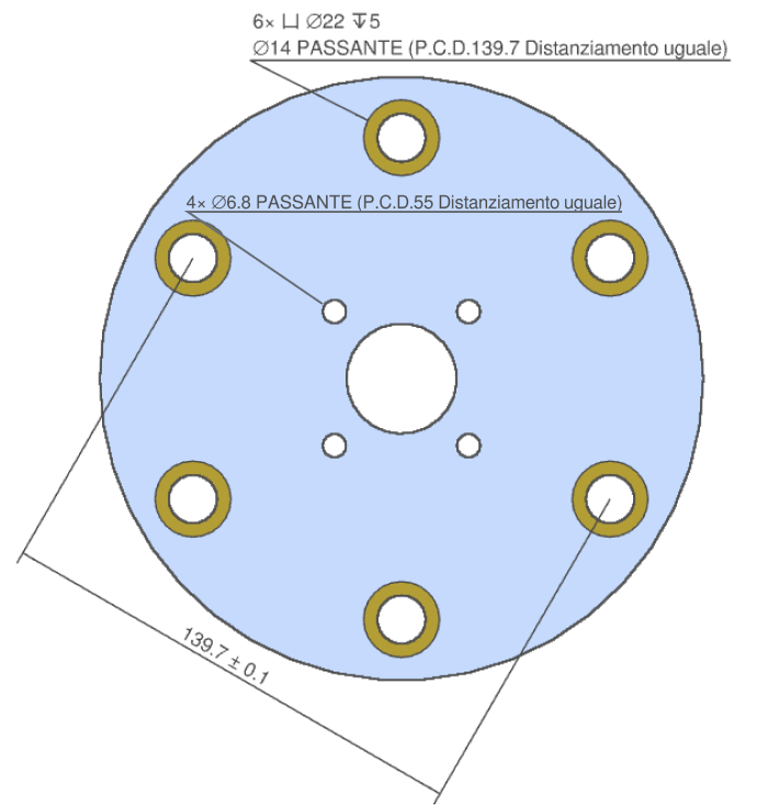 - (4) È possibile aggiungere quote diagonali che indicano la distanza tra i fori e il P.C.D