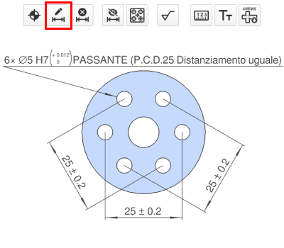 - Se è necessario specificare la tolleranza tra i fori, selezionare l’icona “Aggiungi tolleranza” e specificare la tolleranza per la posizione desiderata.