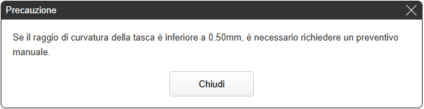 Causa | In alcuni casi, gli spigoli vivi interni di una tasca non sono lavorabili con frese cilindriche, rendendo impossibile l’elaborazione automatica del preventivo. |