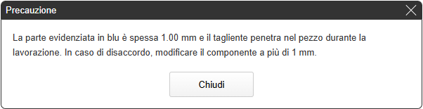 Soluzione | Lo spessore in quella sezione deve essere ≥ 1 mm per consentire il calcolo automatico del preventivo. |