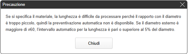 Causa | Le piastre con spessore totale inferiore al 5% del diametro esterno (per pezzi con ø ≥ 60 mm) sono soggette a deformazioni e non possono essere preventivate automaticamente. |