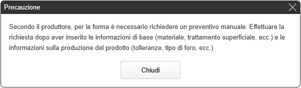 Soluzione | Se lo spessore del modello viene aumentato, è possibile ottenere un preventivo automatico. |