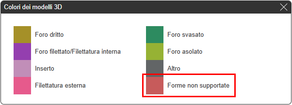 Causa | Le filettature modellate sono forme non riconosciute in meviy. |