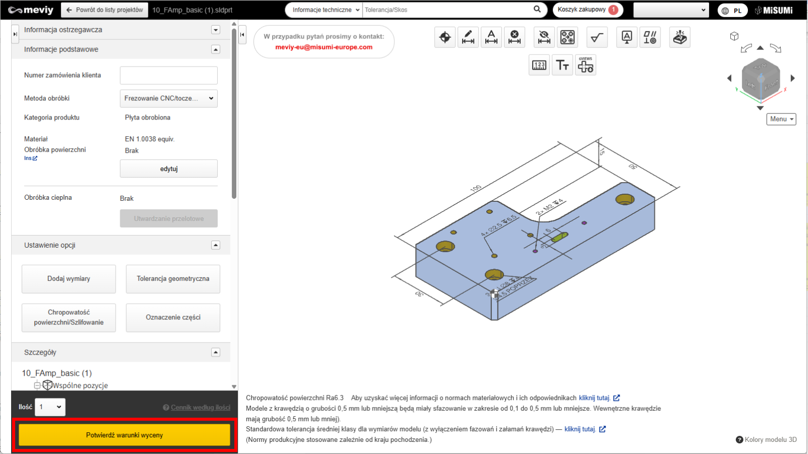 1. Kliknij „Potwierdź warunki oferty”, aby sprawdzić cenę i termin dostawy.