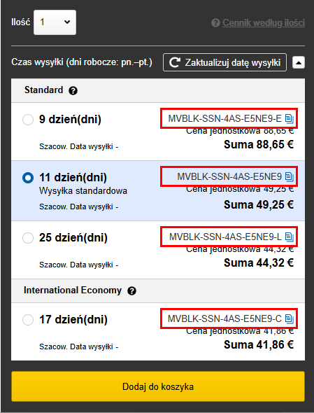 Części dostępne do zamówienia w usłudze meviy