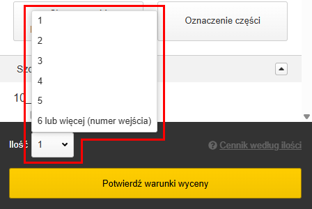 Sprawdzenie ceny i terminu dostawy według ilości
