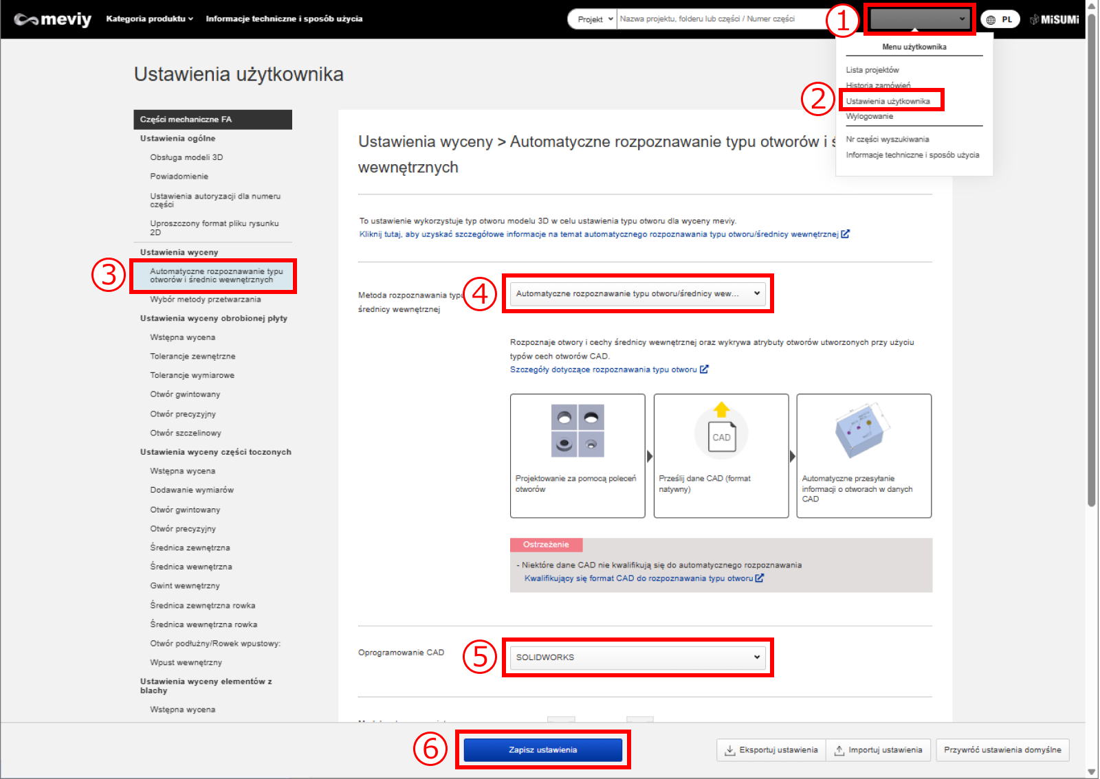 Prawidłowa konfiguracja ustawień oprogramowania CAD poprawia dokładność rozpoznawania typu otworu.