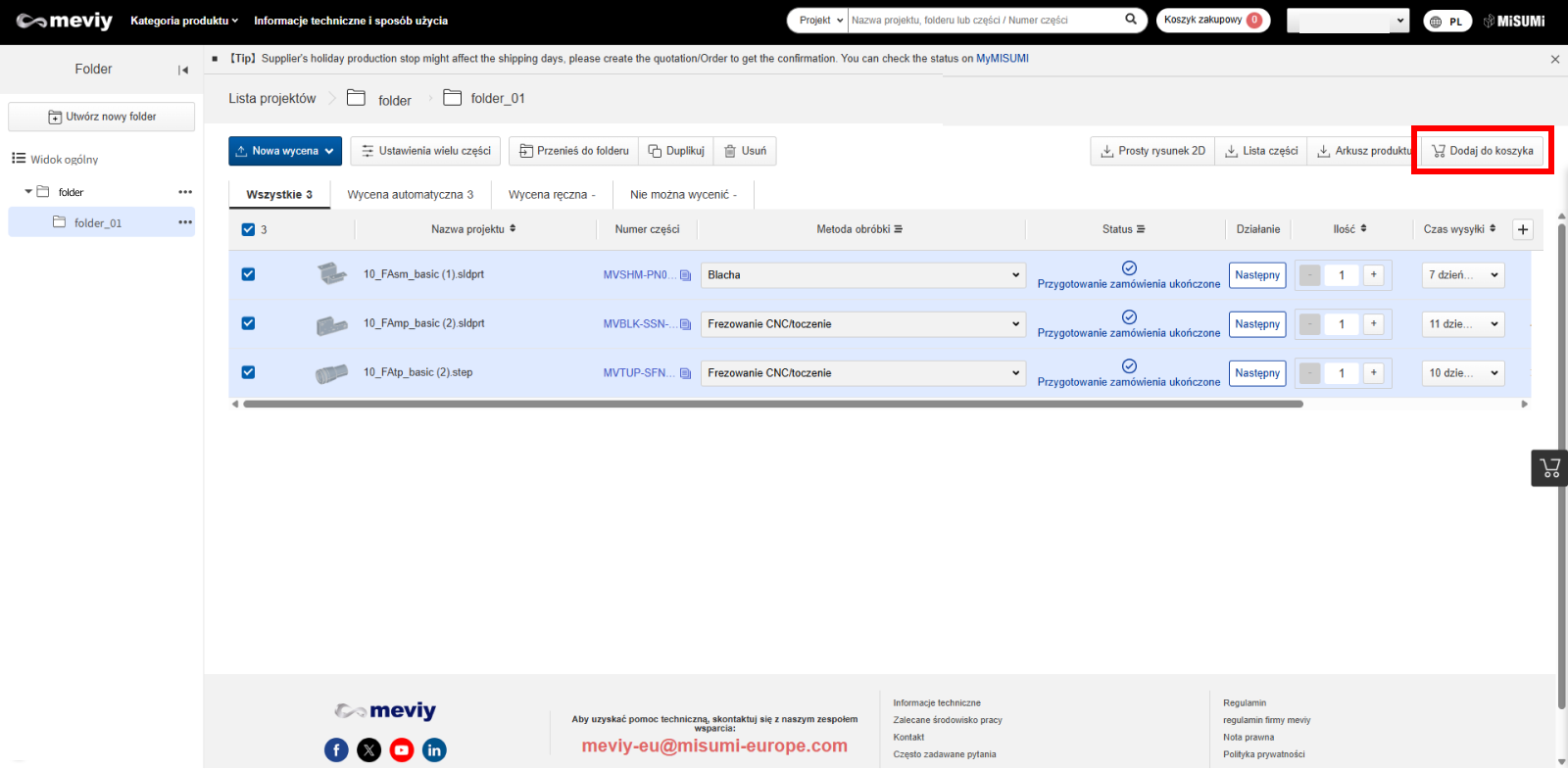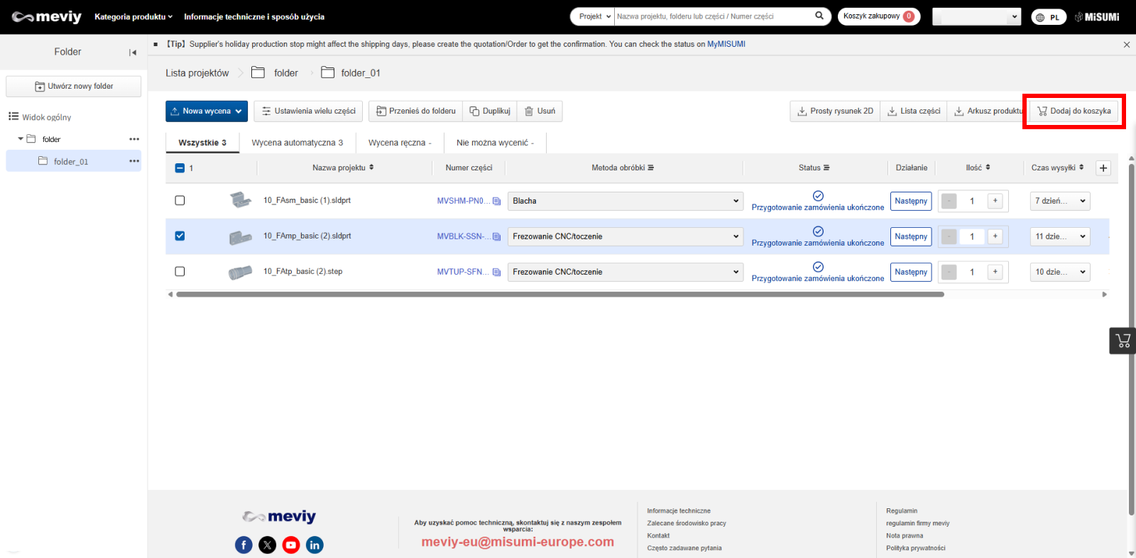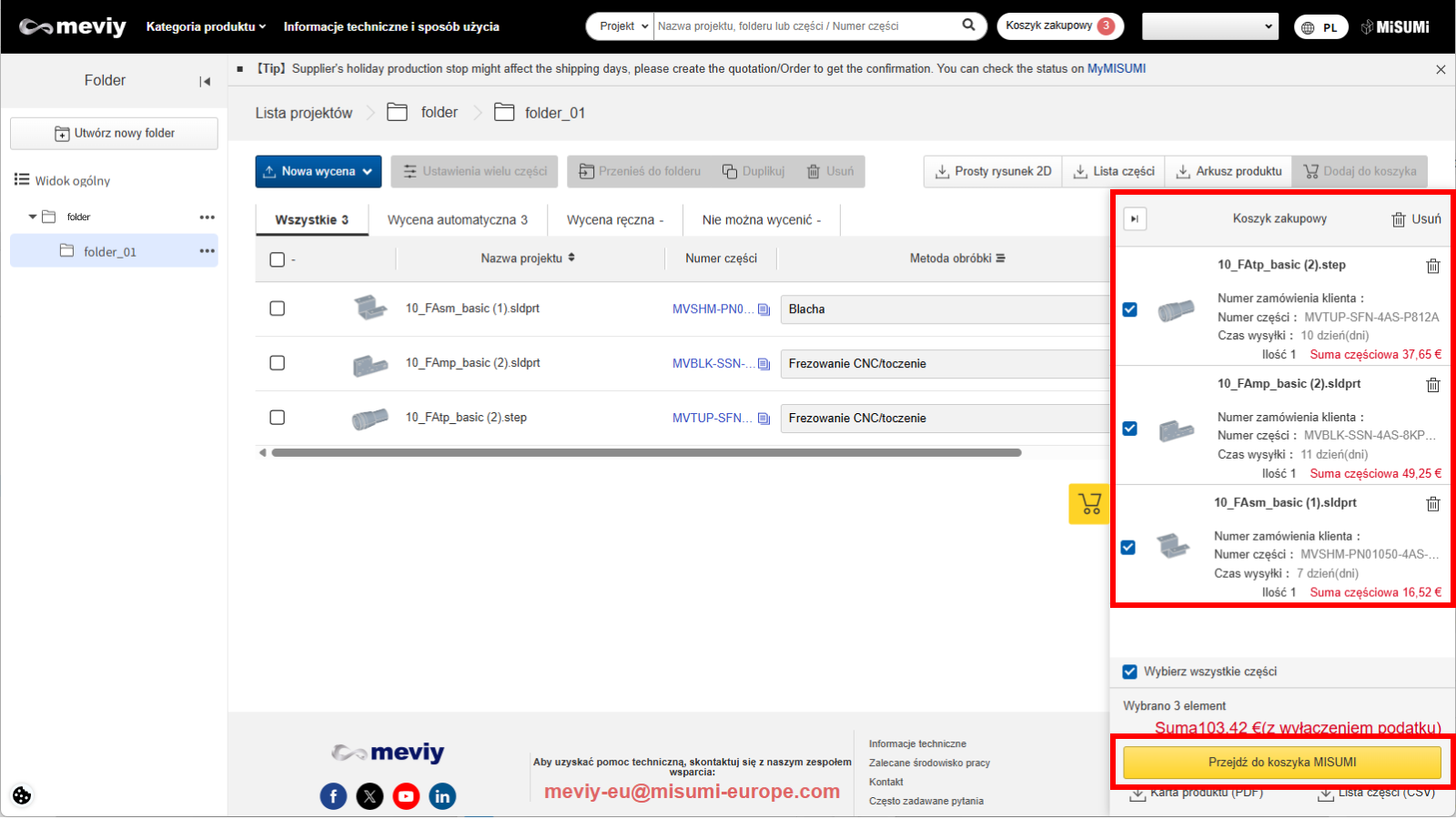 Wybierz części, które chcesz zamówić, kliknij przycisk „Przejdź do zamówienia” i złóż zamówienie na stronie internetowej MISUMI.