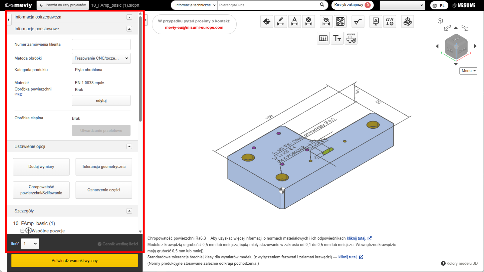 Skonfiguruj i zmień specyfikacje oferty zgodnie z wymaganiami. Ceny i terminy dostaw zostaną ponownie obliczone zgodnie ze zmienionymi specyfikacjami.