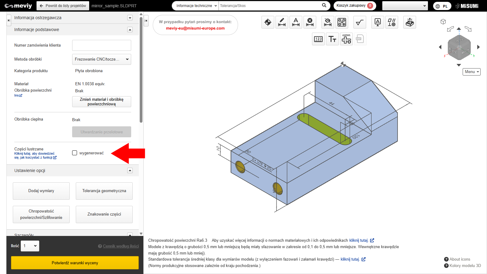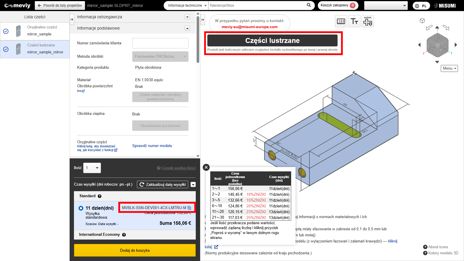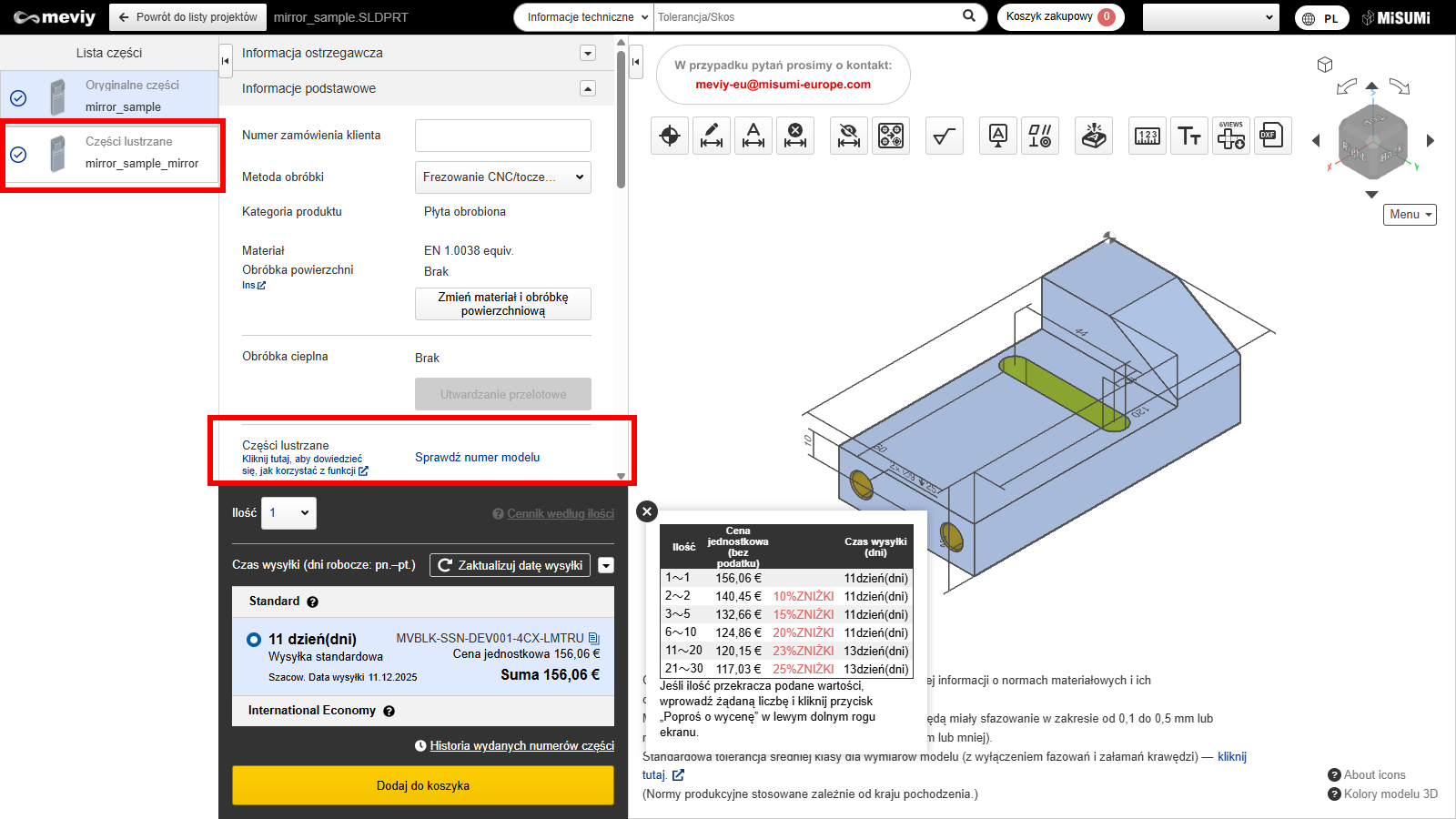 *W przeglądarce 3D meviy model części lustrzanej nie zostanie odwrócony.