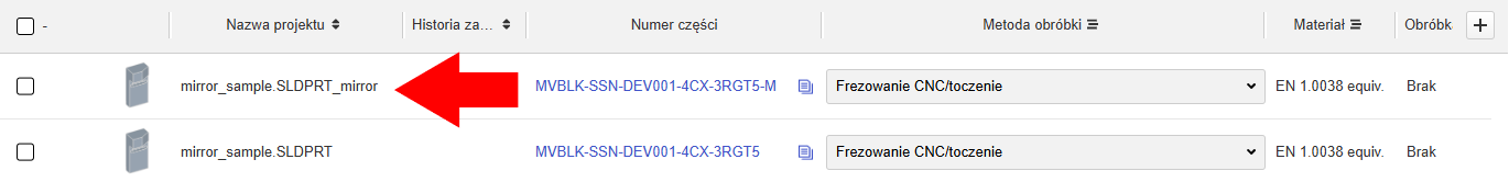 3. Na liście projektów pojawi się projekt wygenerowanej części lustrzanej.