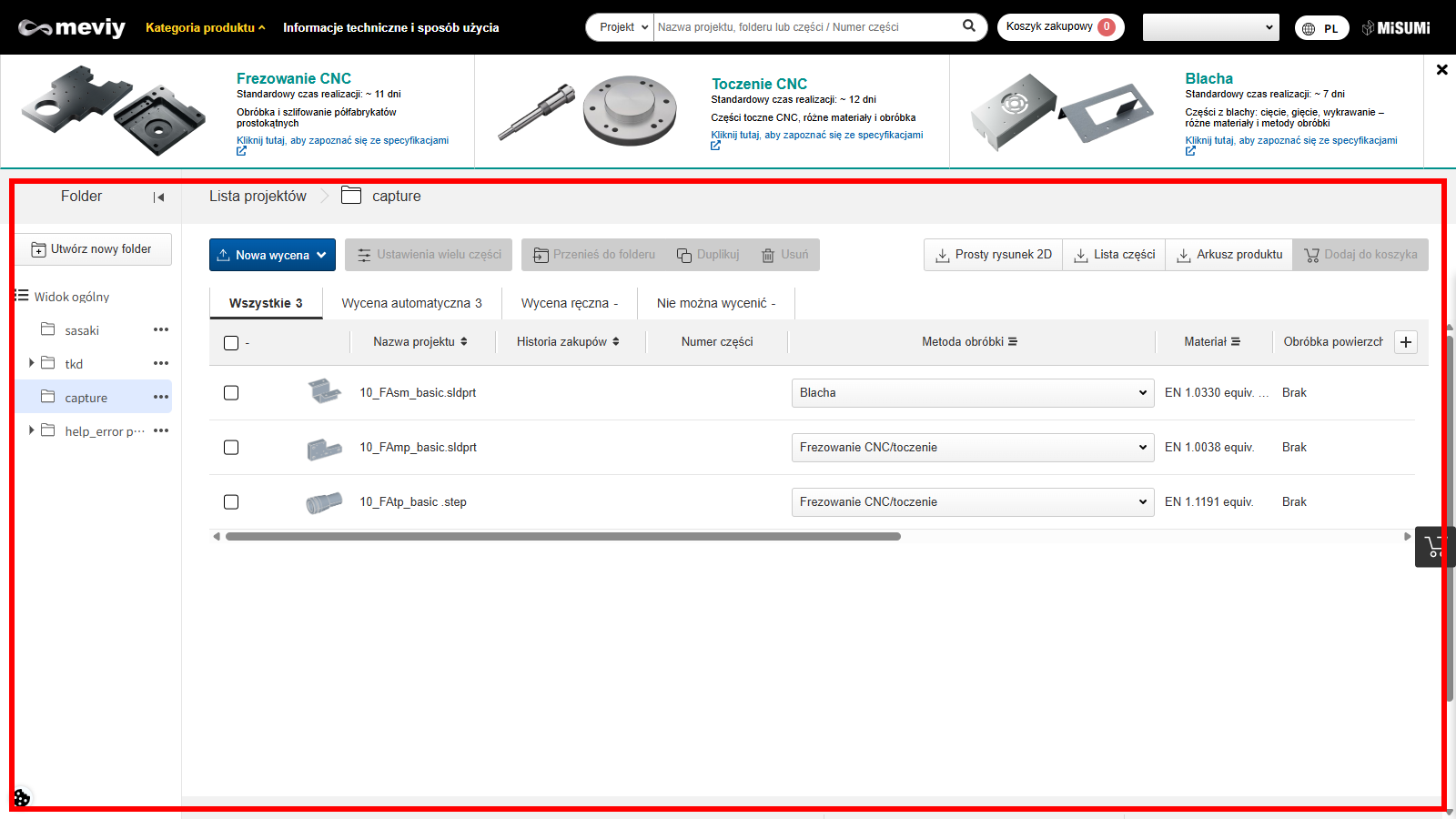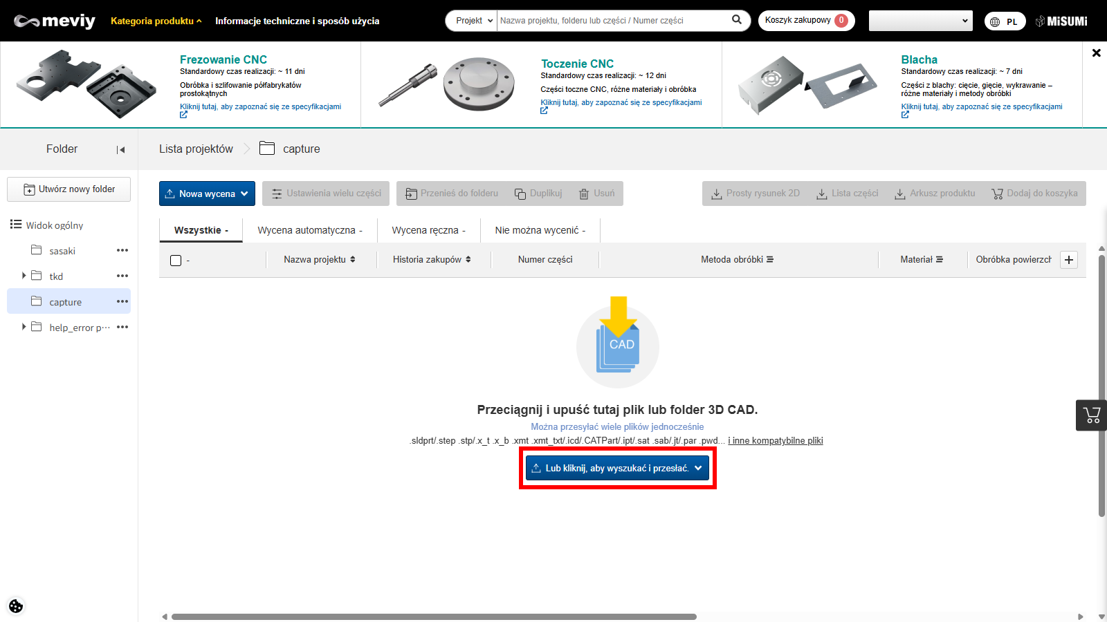 Aby otrzymać wycenę na platformie meviy, konieczne jest przesłanie danych 3D.
