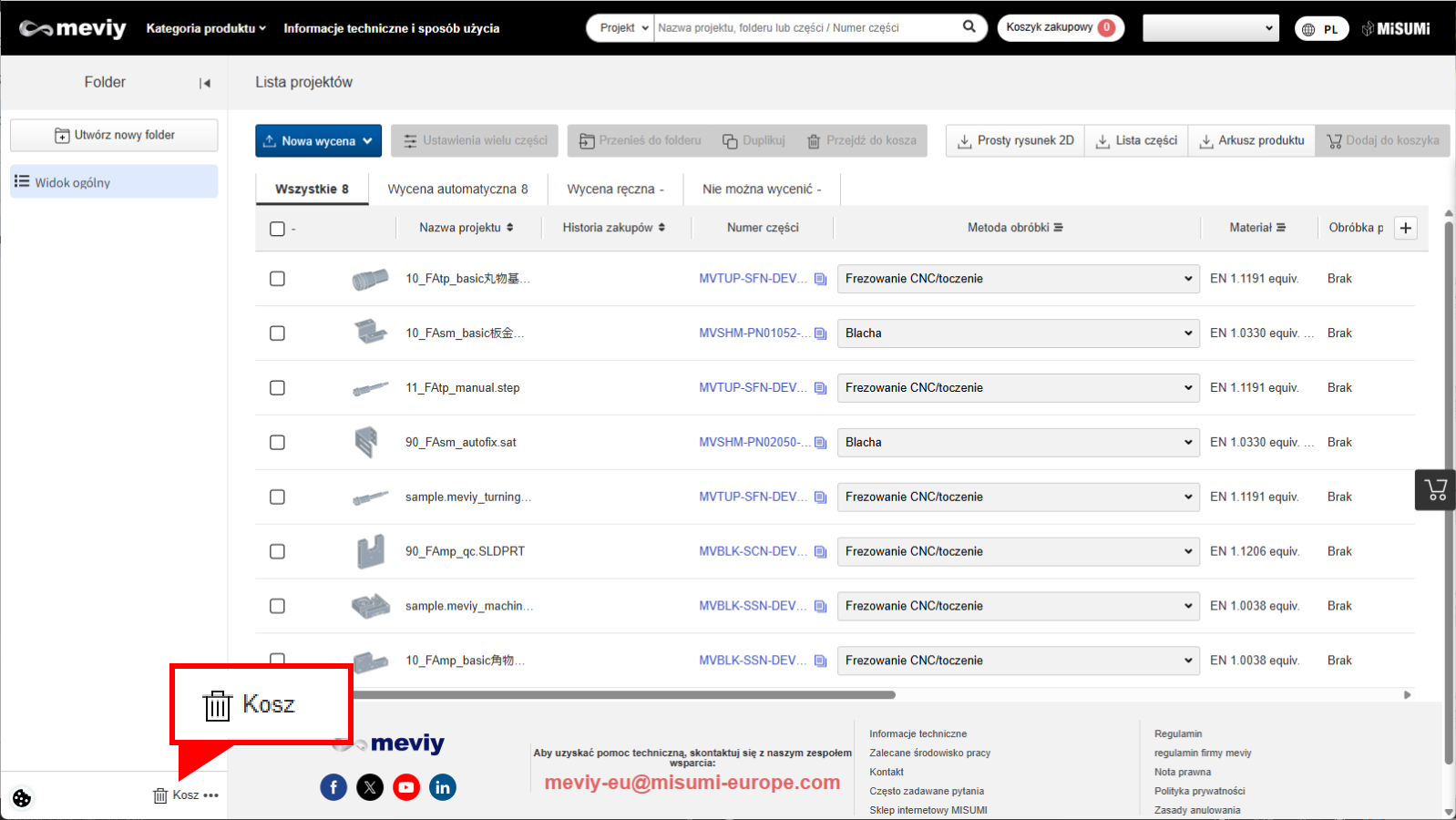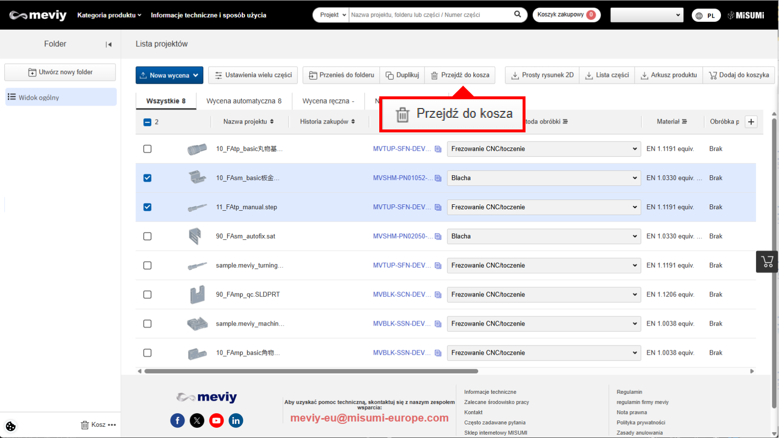 Możesz usunąć wszystkie projekty z folderu Kosz jednocześnie.