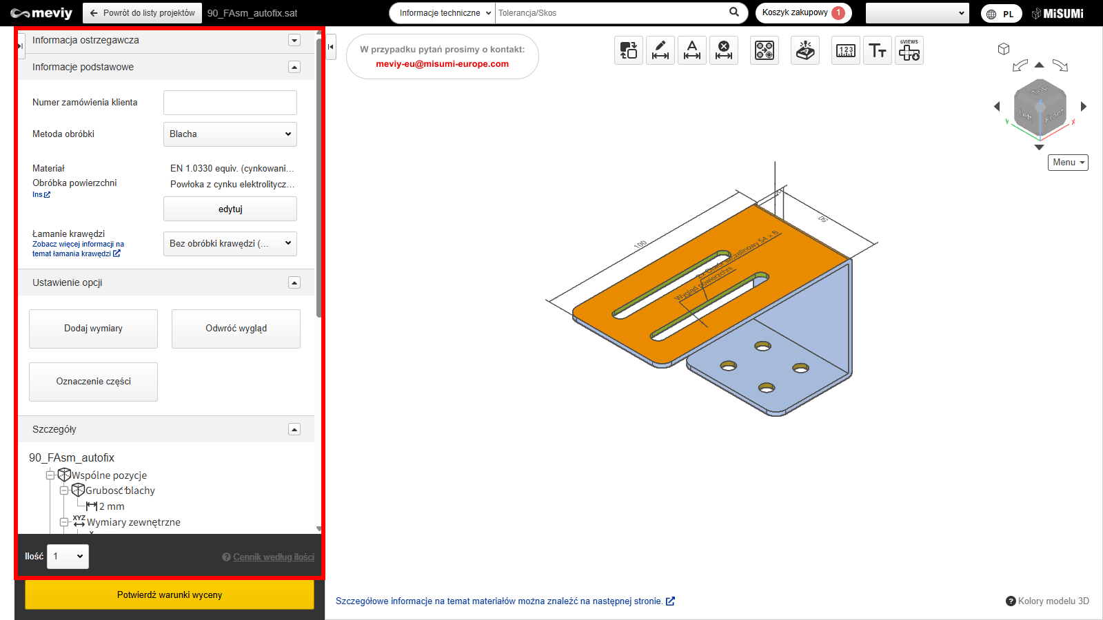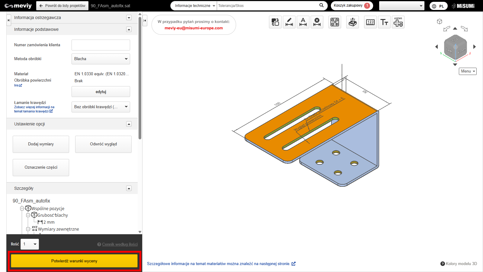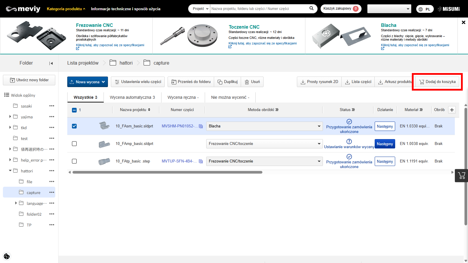1. Wróć do listy projektów i dodaj wybrane części do listy produktów, aby sprawdzić wyniki oferty.