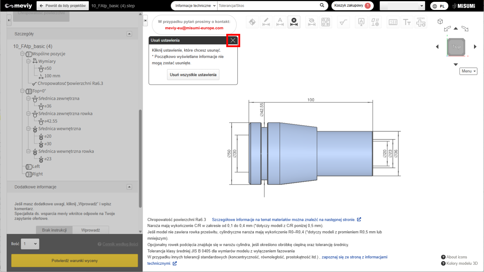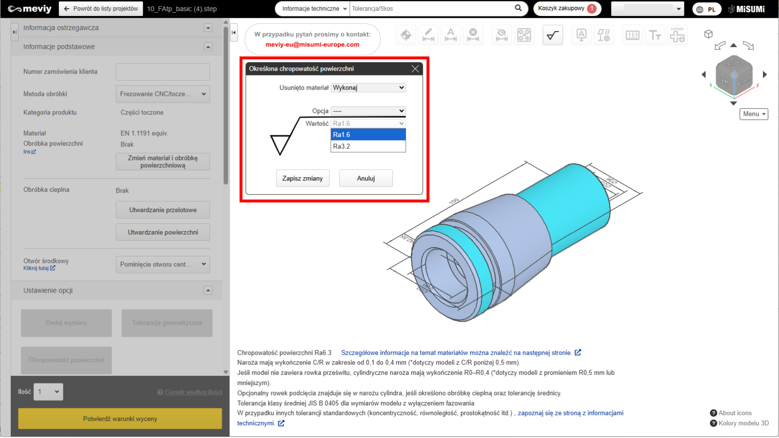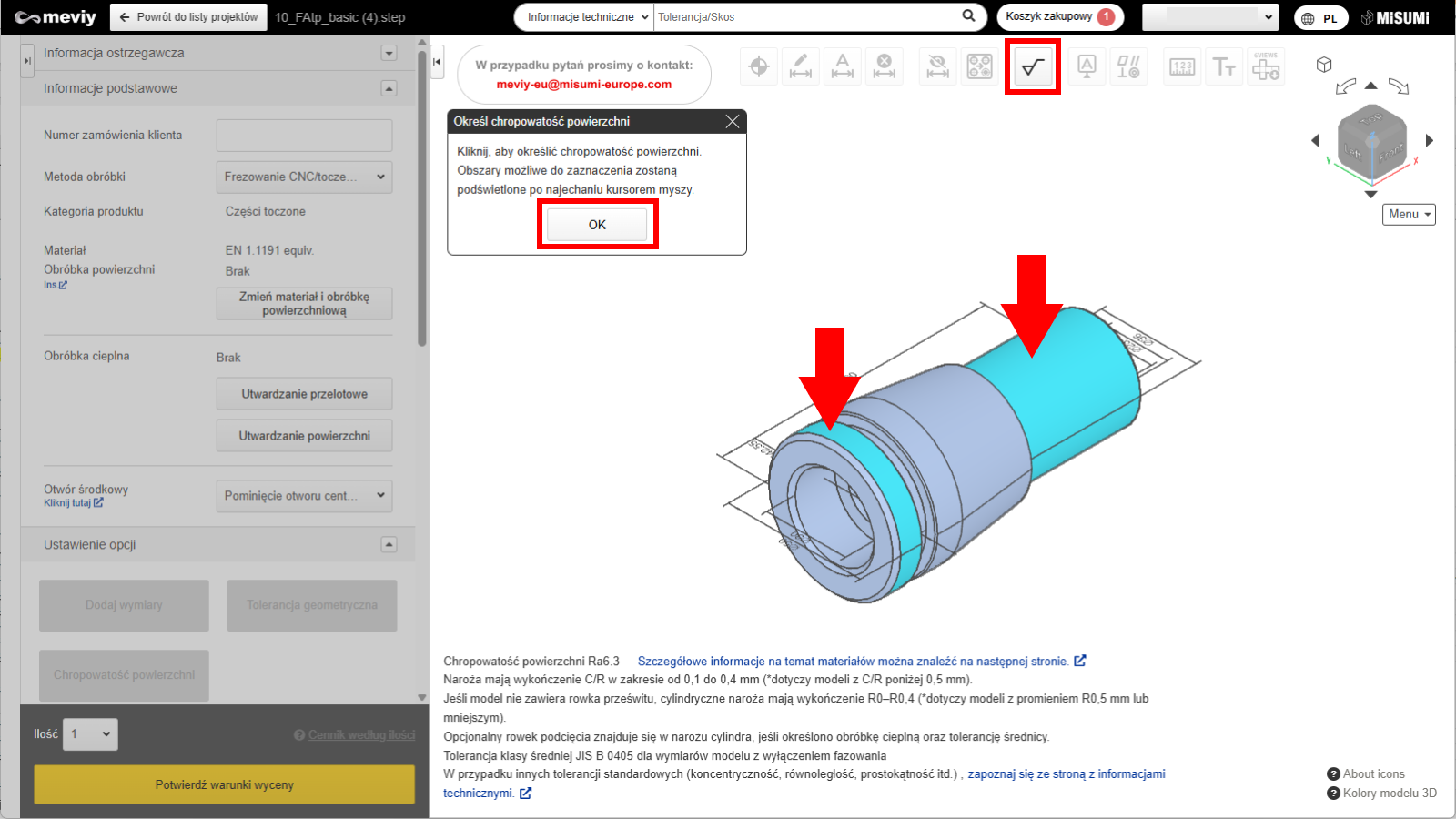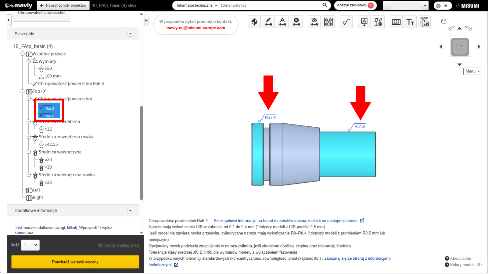 3. Dodaną chropowatość powierzchni można sprawdzić w modelu 3D lub w zakładce „Szczegóły”.