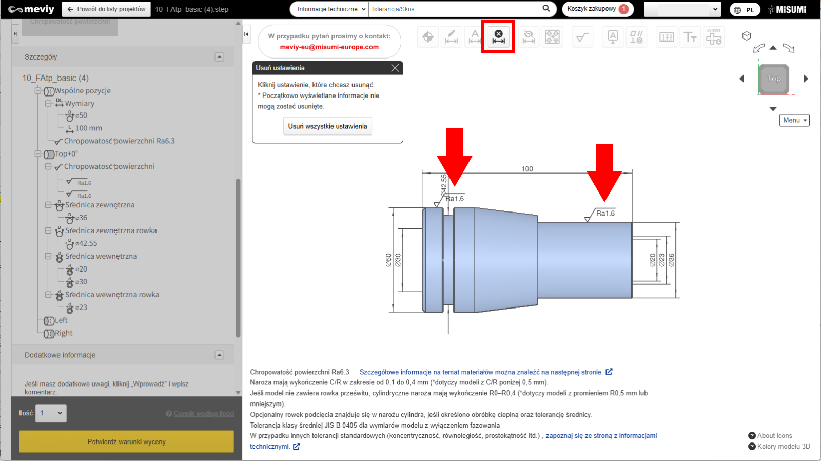 [OBRAZ] „Usuń PMI” i wybierz oznaczenie chropowatości, które chcesz usunąć.