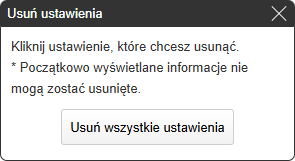 Kliknięcie przycisku „Usuń wszystkie ustawienia” spowoduje usunięcie wszystkich zapisanych ustawień.