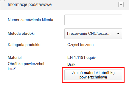 1. Kliknij przycisk [ Zmień materiał i obróbkę powierzchniową ].