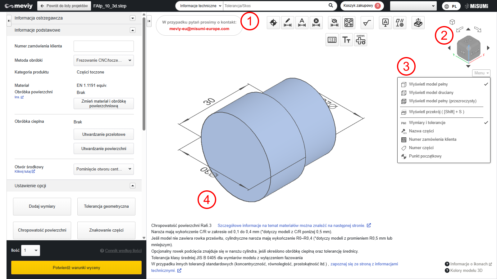 Tutaj można zmienić sposób wyświetlania modelu 3D oraz przełączać widoczność informacji tekstowych.