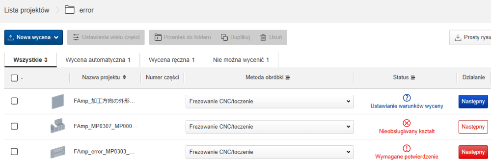 - Błąd wynika z przesłania kształtu, który nie podlega automatycznej wycenie w usłudze frezowania CNC.