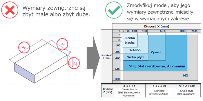 - Błąd oznacza, że model przekracza maksymalne wymiary do automatycznej wyceny.