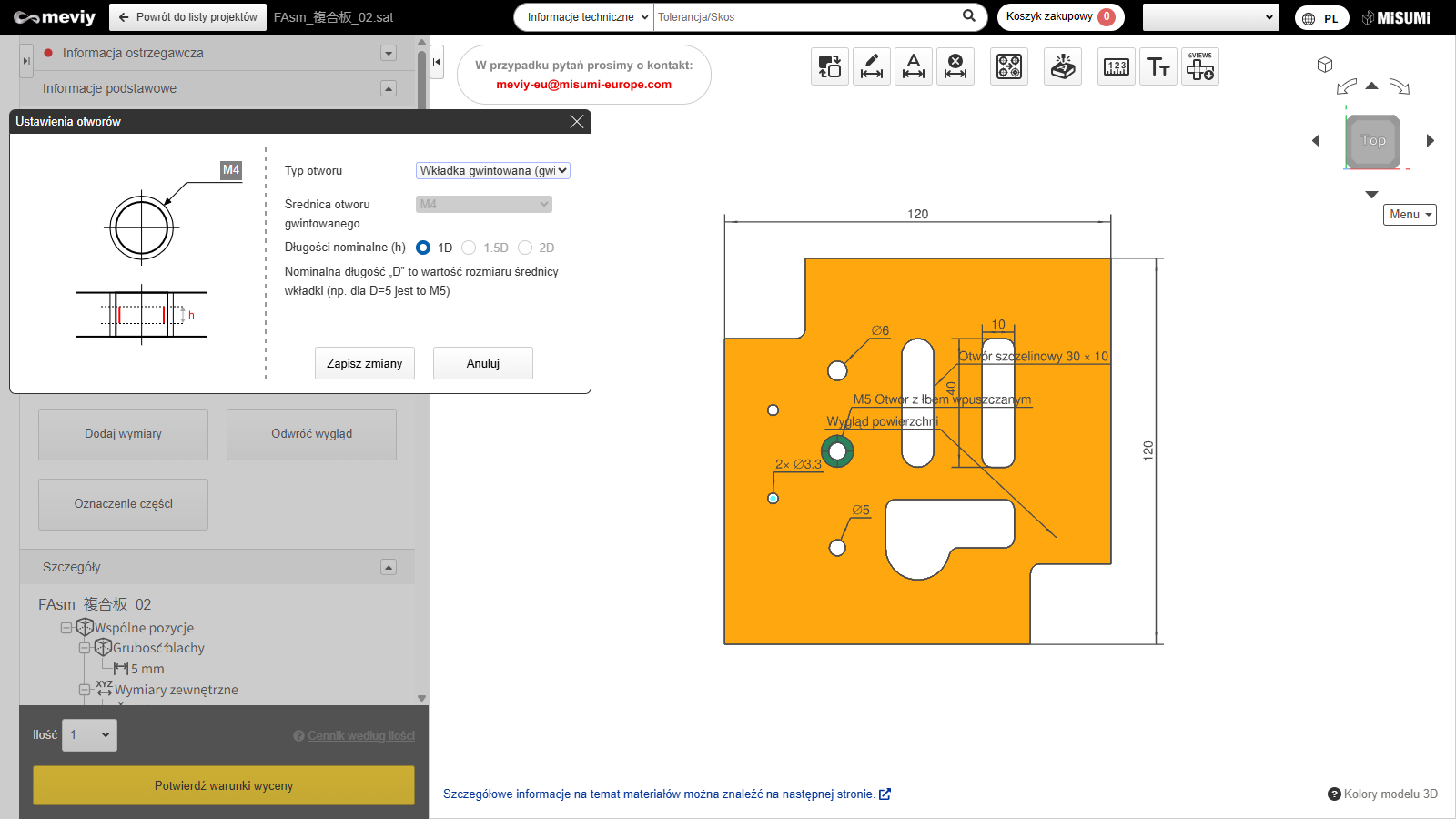 - Maksymalna liczba tulei gwintowanych możliwa do automatycznej wyceny w jednym modelu: 50 sztuk