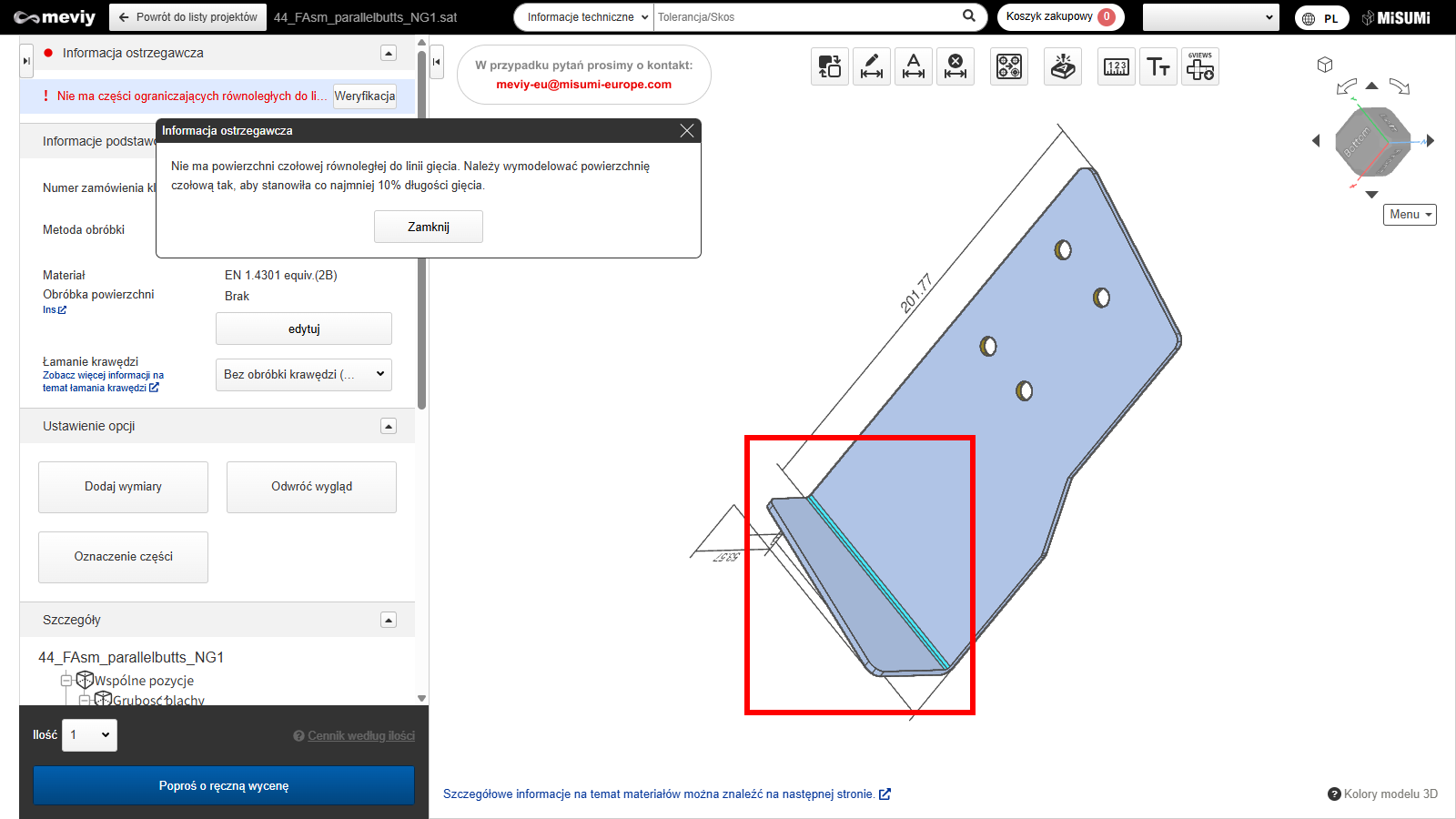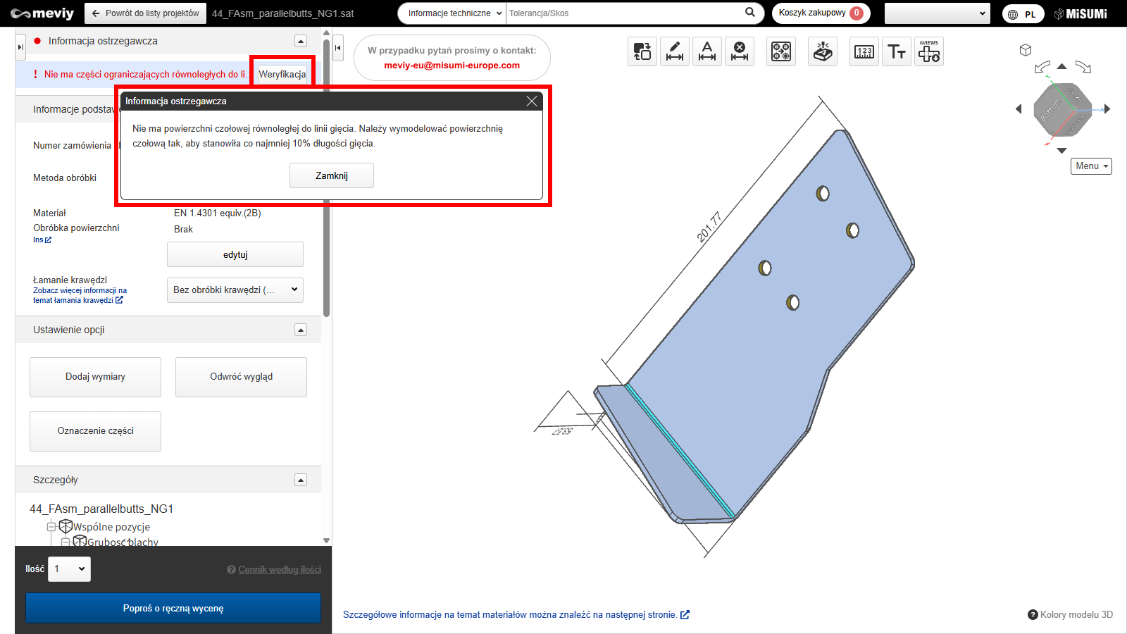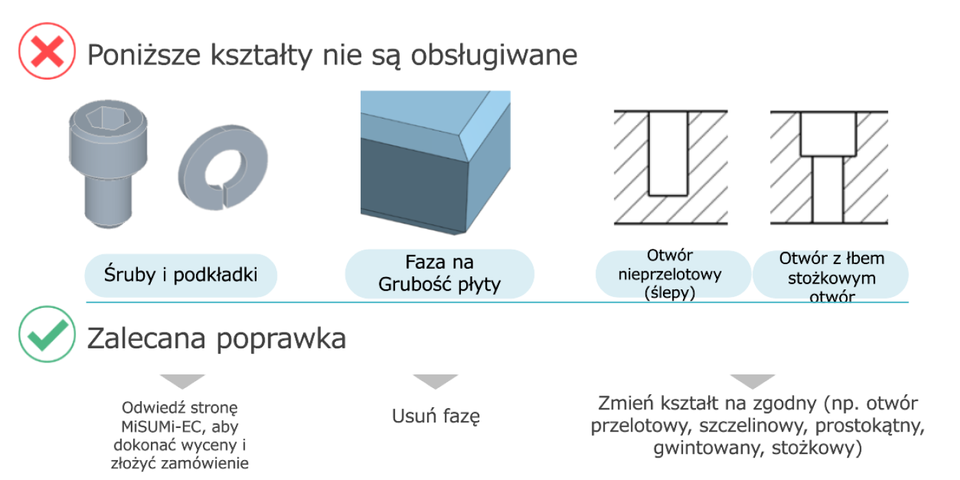 - Ten błąd jest spowodowany przesłaniem kształtu, który nie kwalifikuje się do automatycznej wyceny w usłudze Blacha firmy meviy.