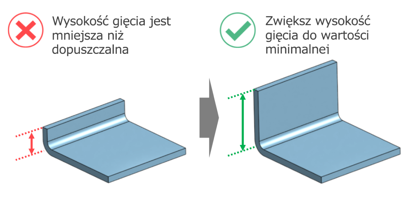 - Aby rozwiązać ten problem, należy zwiększyć wysokość gięcia do wystarczającej wartości.