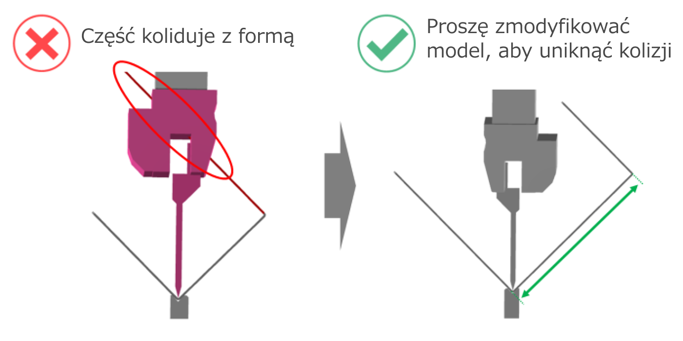- Aby rozwiązać ten problem, zmodyfikuj projekt części, aby uniknąć kolizji.