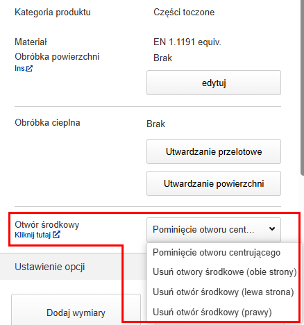 Jeśli wymagany jest otwór z płaskim dnem, zaznacz to w polu „Dodatkowe informacje”.