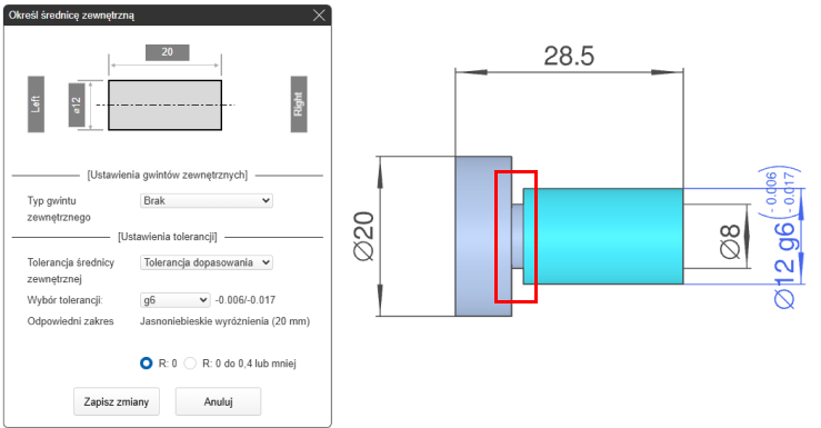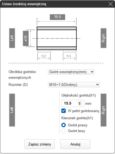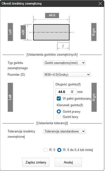 - Nie można rozpoznać kształtu gwintu. Określ gwint zewnętrzny i wewnętrzny.