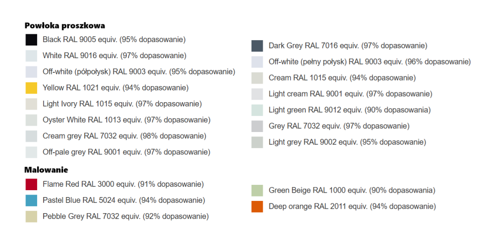 - Typy kolorów farb i powłok