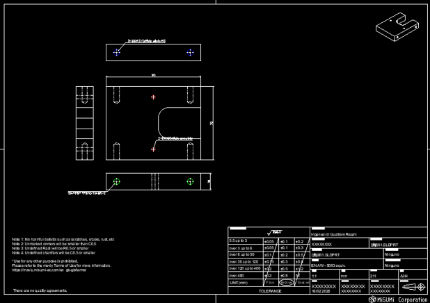 The new function provides clear, dimensioned 2D DXF files that include specific part data and, importantly, geometric tolerances. These standardized outputs act as the definitive „contract“ for measurement, giving QC teams the precise data required for drawing inspections. By providing these specific details in a 2D format, meviy ensures that the physical component matches the digital specification without the need for manual interpretation or back-and-forth communication between departments.